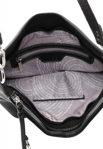 SURI FREY - die Marke für “Freygeister" Authentisch, selbstbewusst und schön - so zeigen sich Frauen in ihrem aufregenden Alltag. Selbstredend am liebsten mit ihrer Lieblingstasche. SFY Debby ist der wunderschöne Beutel in Echtleder-Optik mit längenverstellbarem, abnehmbarem Umhängeriemen, der echte Persönlichkeit ausstrahlt. Ob für Office, Uni oder in der freien Zeit - mit ihm lässt sich einfach jedes Abenteuer bestreiten. Das Modell besteht aus Feinsynthetik und lässt sich mit einem Reißverschluss verschließen. Mit seiner Echtleder-Optik und dem Uni-Design ist der hochwertige Beutel ein echter Hingucker. Wer viel auf Achse ist, will einfach immer gut aussehen. SURI FREY hat genau die Accessoires, die Frauen lieben und die jedes Outfit mit Stil vervollständigen. Ordnung ist das halbe Leben. Ein übersichtliches Hauptfach sind in der Tasche integriert. Ein Reißverschluss-Fach auf der Rückseite schafft zusätzlichen Stauraum und erlaubt den einfachen Zugang zu Dingen, die man immer griffbereit haben möchte. Das Modell SFY Debby ist von der Haptik eher weich und daher besonders angenehm zu tragen. Für das gewisse Extra sorgt die Applikation mit der Logo-Prägung, die zum verspielten Blickfang wird. Mit einem praktischen, längenverstellbaren und abnehmbaren Umhängeriemen und dem Tragegriff wird das neue Lieblingsstück ganz entspannt über der Schulter getragen. Im hübschen Beutel ist einfach Platz für alles - sogar für ein kleines Geschenk für die Gastgeber der aufregenden Party oder ein paar Pralinen für die Oma.